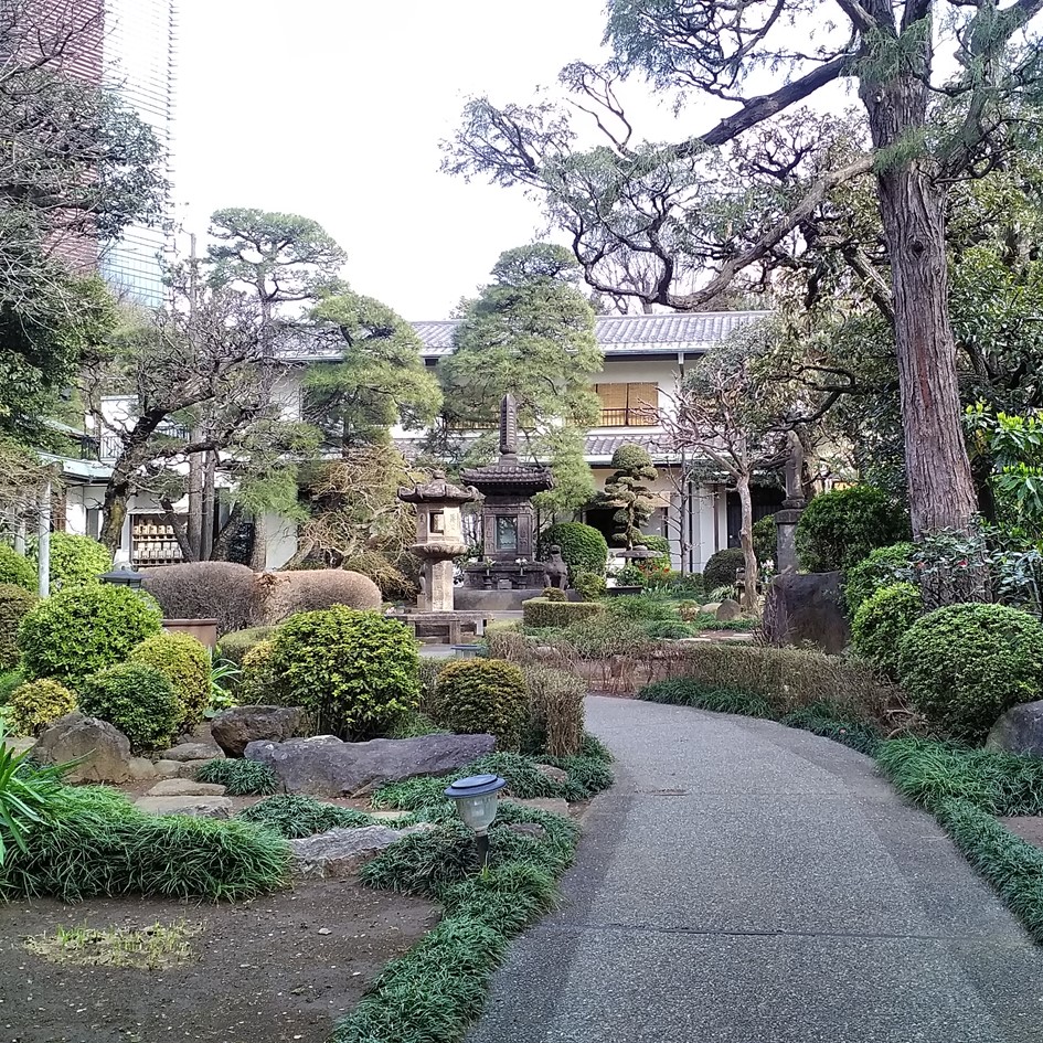 その後、中興の祖とされる檀室師大和尚の代、寛永12年(1635)幕府の江戸開発にともない、当時は八丁堀から現在の地、芝三田寺町に替地移転しました。